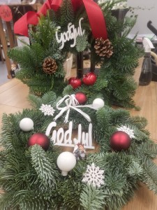 ”Vi brukar föreslå blandkransar, för det är så himla fint. Man kan hänga den på dörren. Eller så kan man lägga det på bordet och sätta i ljushållare.”