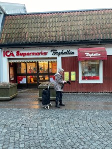 Marcus Haglund har arbetat på Ica Torghallen i Mariefred i tjugo år och märker att folk fortfarande handlar lokalt – alla måste ju äta, men de handlar mindre än tidigare. Kundantalet är detsamma som tidigare, men man väljer att handla mindre och bara det som är nödvändigt.