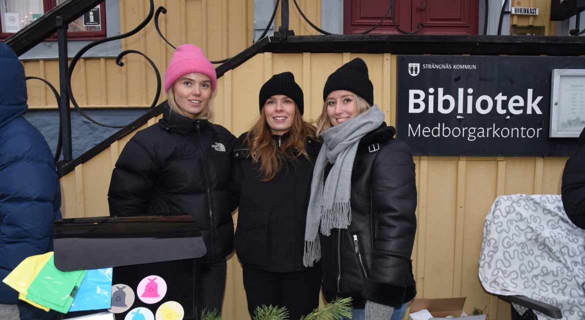 Glada färger bygger på Emma Södermans, Pontus Karlssons, Jennifer Grundbergs, Tess Erikssons och Filip Eskilssons idé ett utvecklat system för sopsortering. Här är Emma, Tess och Jennifer på Mariefreds julmarknad.