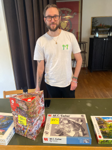 Filippa Werner Freed är arrangör för marknaden och har pusslat sedan hon var liten. Hon bor utanför Mariefred på landet och är egenföretagare inom akupunktur och energimedicin. Under pandemin var hon tvungen att lägga ner sin verksamhet på grund av att människor var rädda för smittorisken. Då tog pusslandet fart och när hon insåg att det fanns ett behov att mötas och utbyta pussel istället för att skicka efter dem, bestämde hon sig för att anordna en pusselmarknad. – Nu är det tredje gången vi har den. Vi kör två gånger om året, vår och höst. Pusselmarknaden tog fart under pandemin och helt plötsligt fanns det ett enormt utbud. Då skickade vi till varandra, men det var inte så miljövänligt och då ville jag se om det funkade med lokal istället. Det blev väldigt uppskattat första gången, majoriteten kom tillbaka andra gången och nu var iallafall fyra av dem med, så det känns kul, säger Filippa.