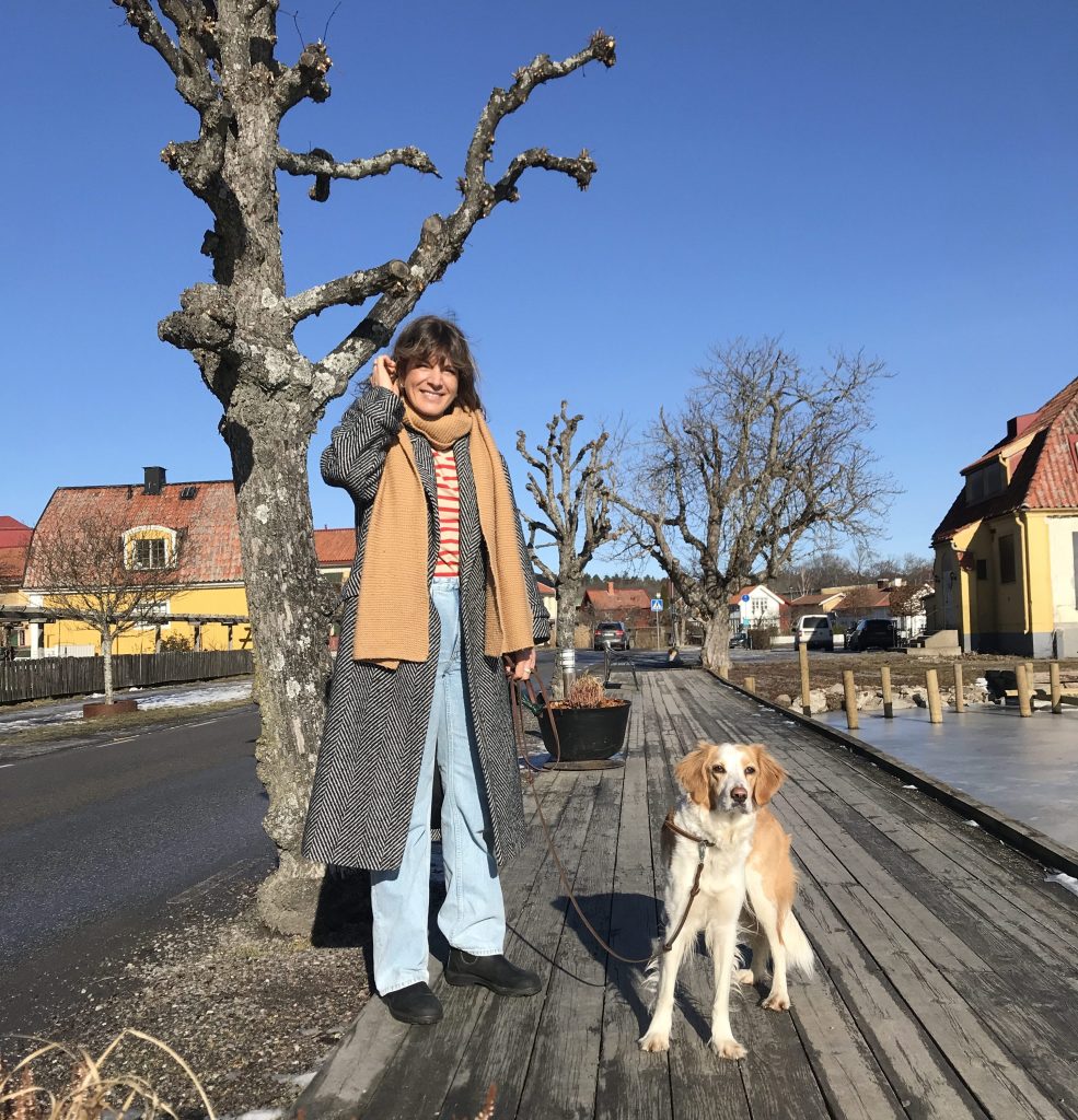 Erika flyttade till Mariefred för 13 år sedan och driver idag Träningsrevolution. Här på en strandpromenad tillsammans med hunden Luna.