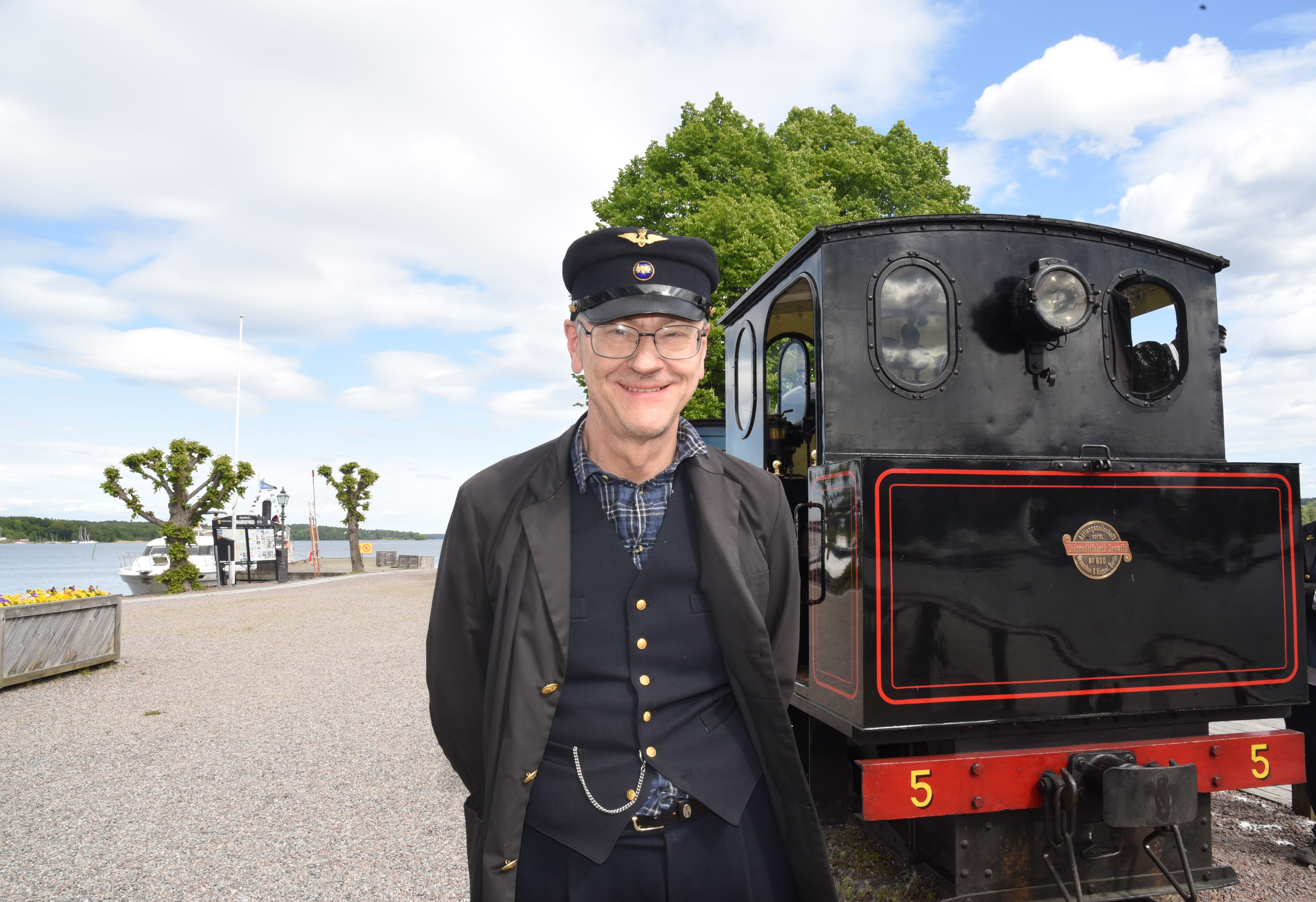 På museijärnvägen var det fullt av aktivitet på Ångans dag. Fyra ånglok var i trafik. Dag Bonnedal som eldade på loket Hamra åkte tre turer fram och tillbaka till Taxinge. När MT/Måsen möter honom har tåget anlänt i hamnen och väntar på att vända för att köra tillbaka till Taxinge via Mariefred och Läggesta. Dag Bonnedal är nöjd.