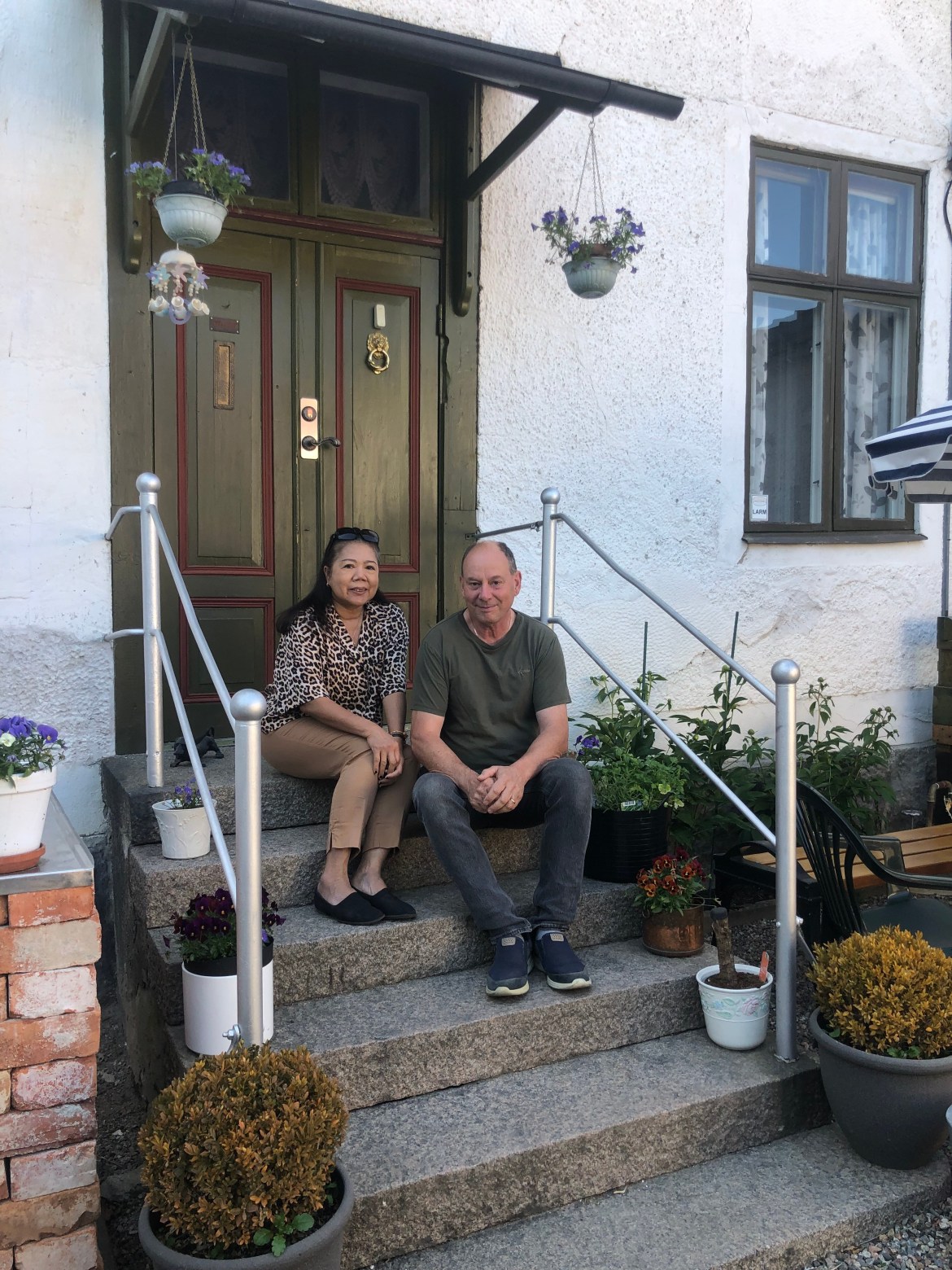 Mikael och Supannee, som för ett par år sedan flyttade tillbaka till det gamla släkthuset vid torget planerar att bo kvar här så länge de lever. De trivs utmärkt och att bo i ett hus där historiens vingslag är så påtagliga tror Mikael gör gott för själen.