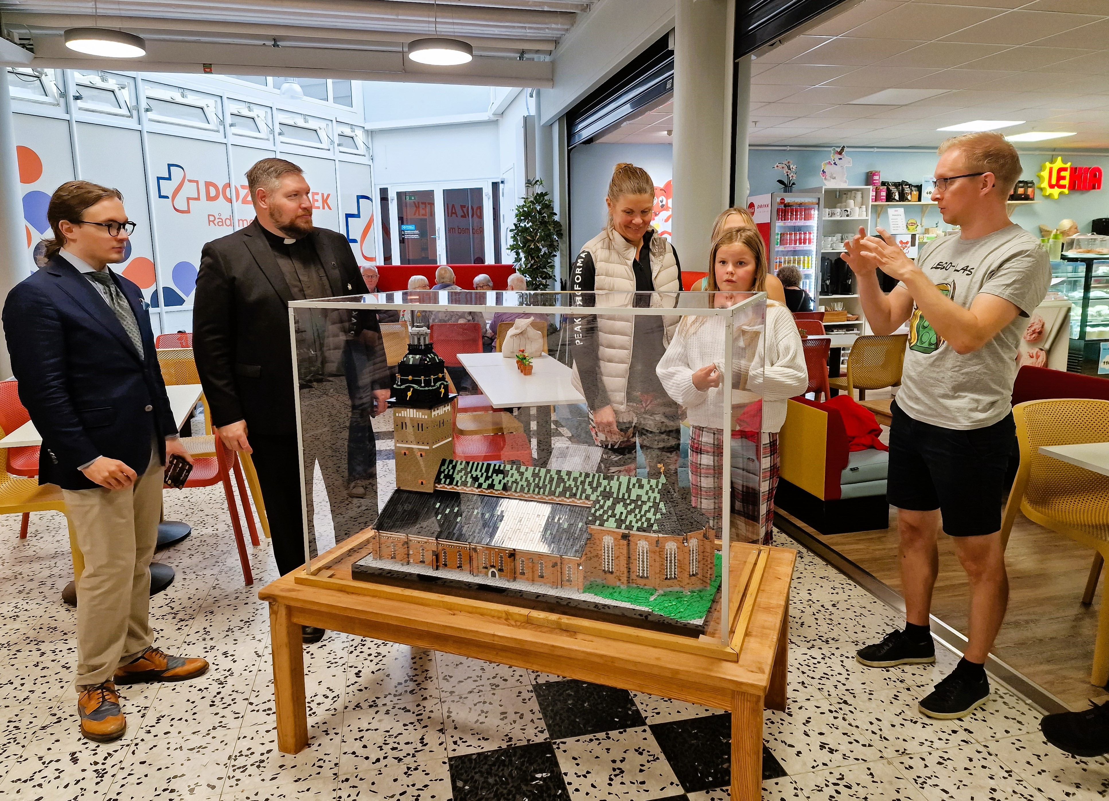 Många har samlats för att beundra modellen vid Lekia i Präntaren och här kom också förslag på utveckling av användningsområden för kyrkan.