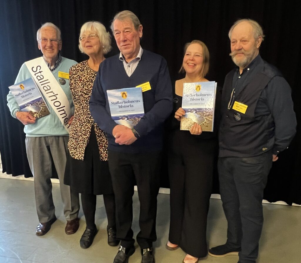 Fyra krönikörer och en ”skrönikör” tog emot många besökare under en marssöndag i Gula industrihuset, när de till synes mycket stolta presenterade sitt gemensamma projekt: boken ”Stallarholmens historia – från inlandsis till nutid”.