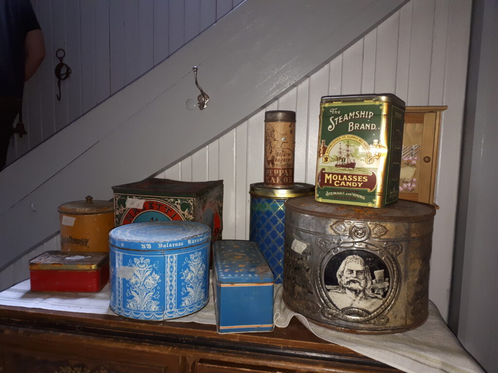 - Det är sådana långa hyllor man hade förr i världen med glasskeppor där man kan ha socker, gryn och mjöl. Jag hittade några stycken exakt likadana, så dem är jag nöjd med.
