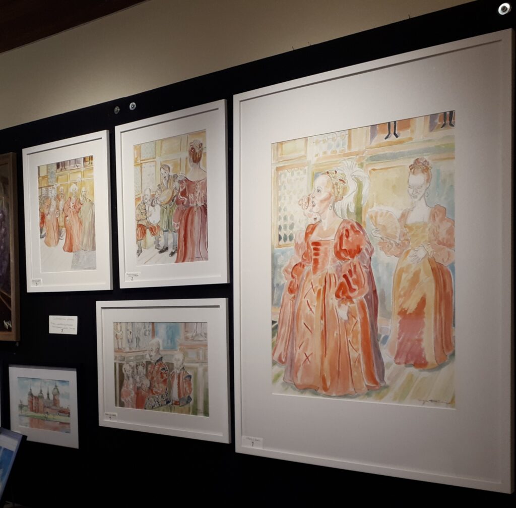 Inger Westling visar sina akvareller där hon gör nedslag i historien. Bland annat skildrar hon Gustav III:s teater, Gripsholms slott och Callanderska gården. Inger ger oss också tolkningar i akvarell av ”Romeo och Julia kören”, som ofta gästat Gripsholms slott.