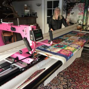 Kari har själv en longarm symaskin som kan vara mycket praktisk när man vill quilta större textilier.