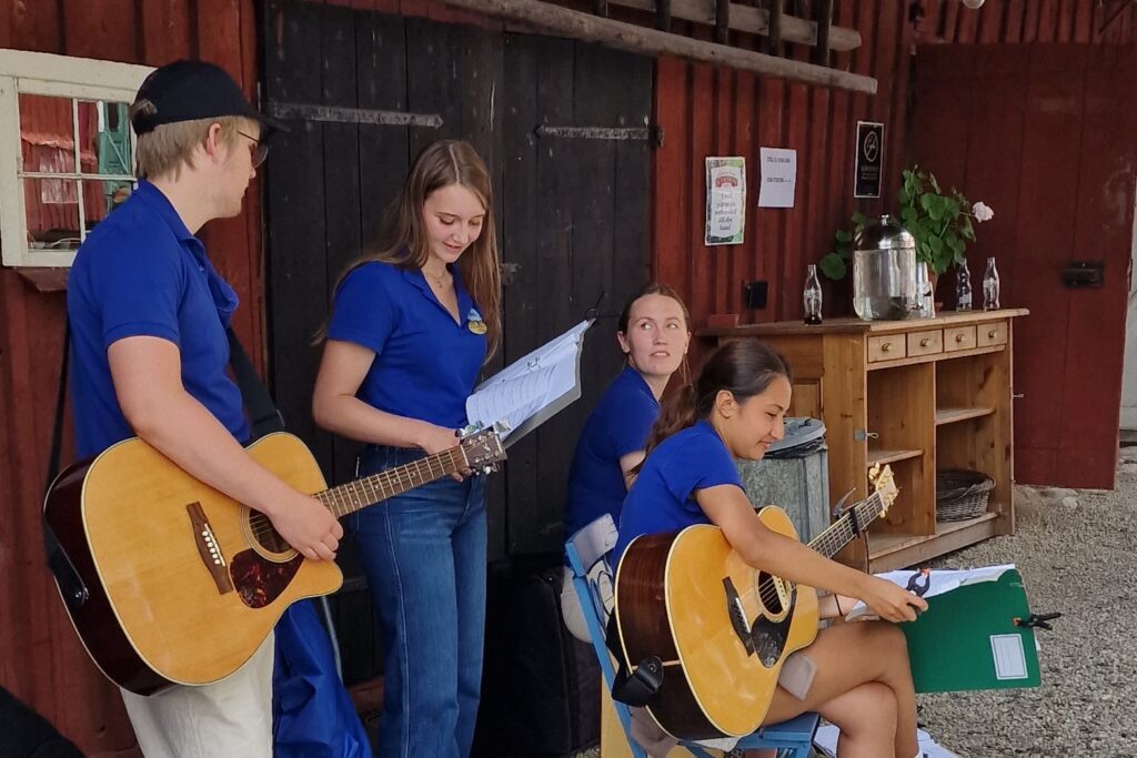 Idag tyckte de att Callanderska kunde vara ett trevligt ställe att framföra några sånger på. Här är många turister som fikar, besöker museet och kanske vill veta mer om hembygdsgården.