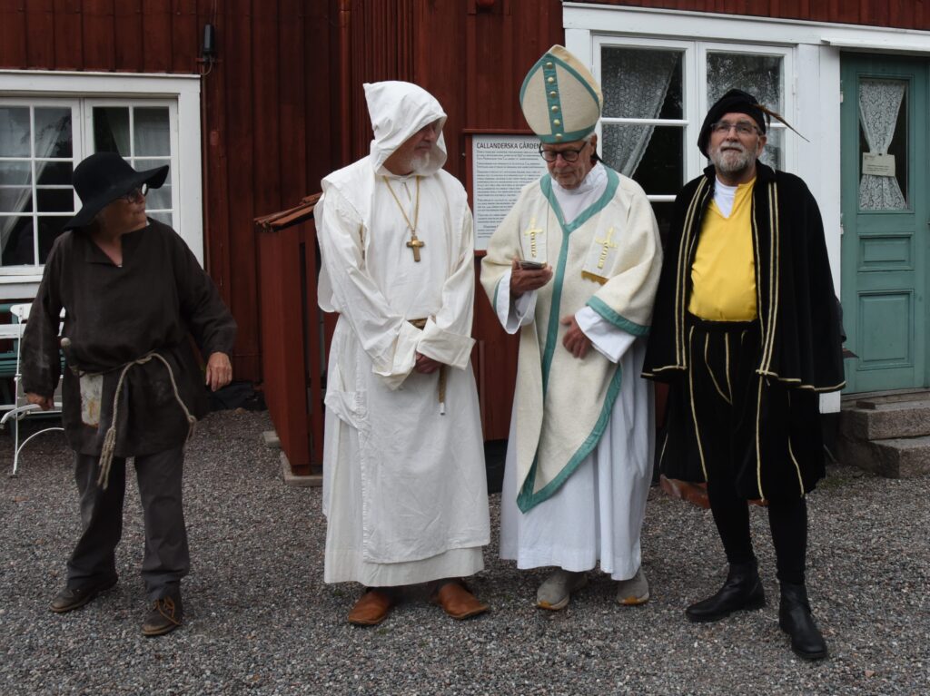 Trädgårdsteatern lägger sista handen vid sin föreställning ”Gustav Vasa i Mariefred”. Premiär blir det på Callanderska under Vasafesten på lördag. Hanna Widinghoff regisserar och Hembygdsföreningen är arrangör. Tord Eng har skrivit manus och spelar också ärkebiskop Jakob Ulfsson i föreställningen.