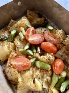 - Sätt in i ugnen tills potatisen börjar få färg i kanterna - 15–20 min beroende på storlek