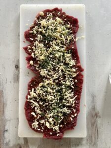 - Öppna upp flanksteken genom att försiktigt skära ett snitt längs med fibrerna