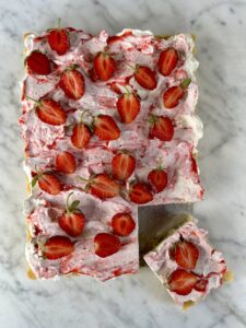 Mazarinkaka med citron och jordgubbsgrädde