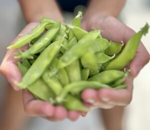 Min trädgård blev en djungel när jag var borta från den i bara en vecka. Men vilka fina fynd jag gör i den. Zucchinin är på gång, tomater och gurka likaså men jösses vad med sockerärtor och basilika jag har. Jag känner mig rik och svänger ihop en pasta med (köpt) färsk vitlök toppad med parmesan och ätbara blommor medan jag ignorerar regnet som vräker ner. Smaklig läsning!