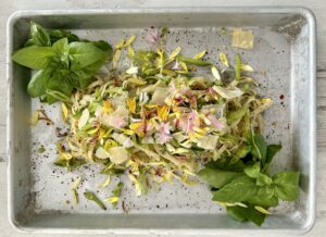 • Lägg upp på tallrikar och strö över hackade färska örter och ätbara blommor.