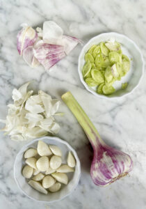 1. Skiva stjälken tunt och använd istället för purjolök.