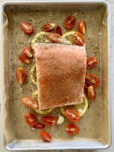 - Baka laxen 18-20 min i ugnen. Ta ut och låt svalna lite