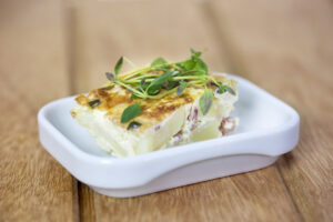 Linda berättar att den smårätt som beställs mest är skagenröra med bröd och bland desserterna är kökets pannacotta, ostkaka med sylt och grädde samt kökets smoothie några av favoriterna.