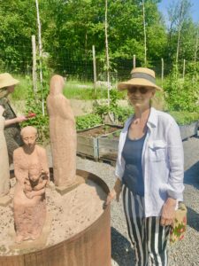 Igår var det vernissage på Osprey Farm studio utanför Strängnäs, där Lena Lerviks Madonnaskulpturer fått ta plats i örtagården. Det blev sång, mat och rejält med sommarvärme.