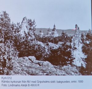 Gripsholms värdshus var vänliga att hjälpa till med fotograferingen, när de ändå hade en drönare på plats och i med det finns ett foto av kyrktuppen, men den är svår att artbestämma.