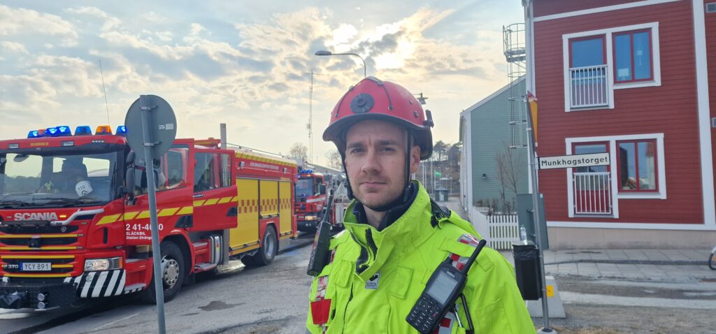 David Hultman som är insatsledare på platsen berättar att man har jobbat med att framför allt släcka en brand på fasaden.