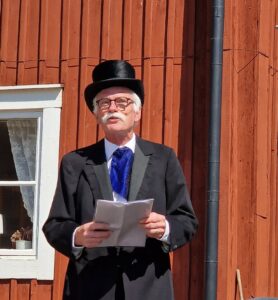 Ordförande i hembygdsföreningen Paul Tamm inleder ceremonin genom att också lyfta fram alla de aktiva i föreningen som har gjort det här möjligt.