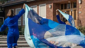 - Föreställningen är fängslande. Barnen kommer in i sin gymnastiksal och plötsligt ser allt annorlunda ut. De befinner sig i den här vattenvärlden, berättar dansaren och koreografen Veronica Hammarlund.