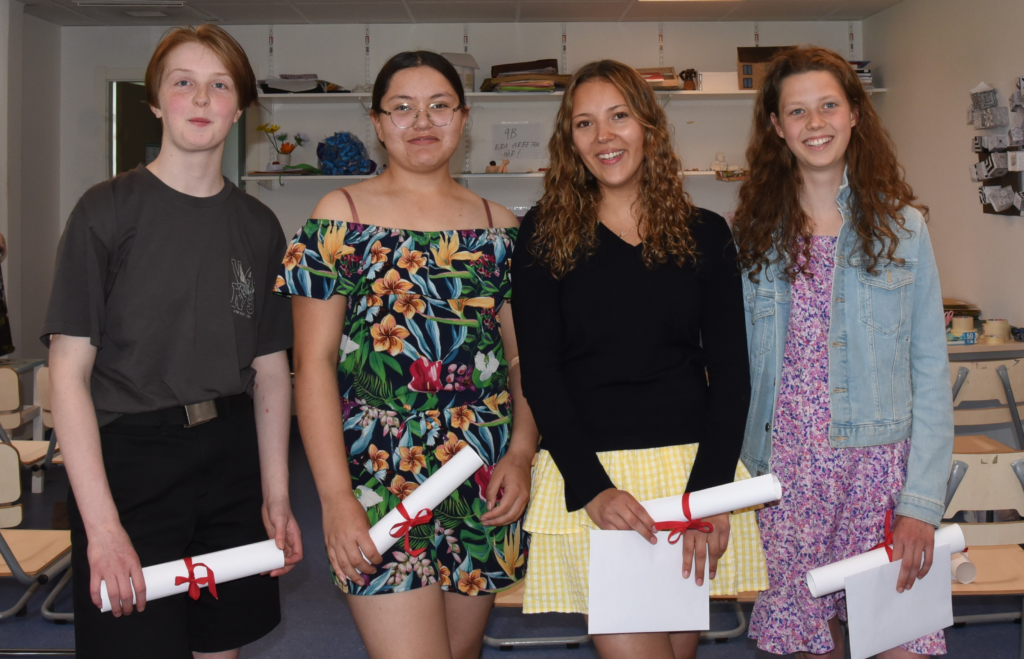 Milo Toribio Jansson, Elice Piri, Sofie Wiktor, Elina Tshibanda och Noomi Wingren (ej på bild), vann priset för bästa klimathack när Gripsholmsskolan jobbade med att ta fram ett projekt i samarbete med Strängnäs kommun. Deras tanke är att styra om både trä- och textilslöjden till ökat återbruk där man till exempel fokuserar mer på att lära sig laga och sy om kläder.