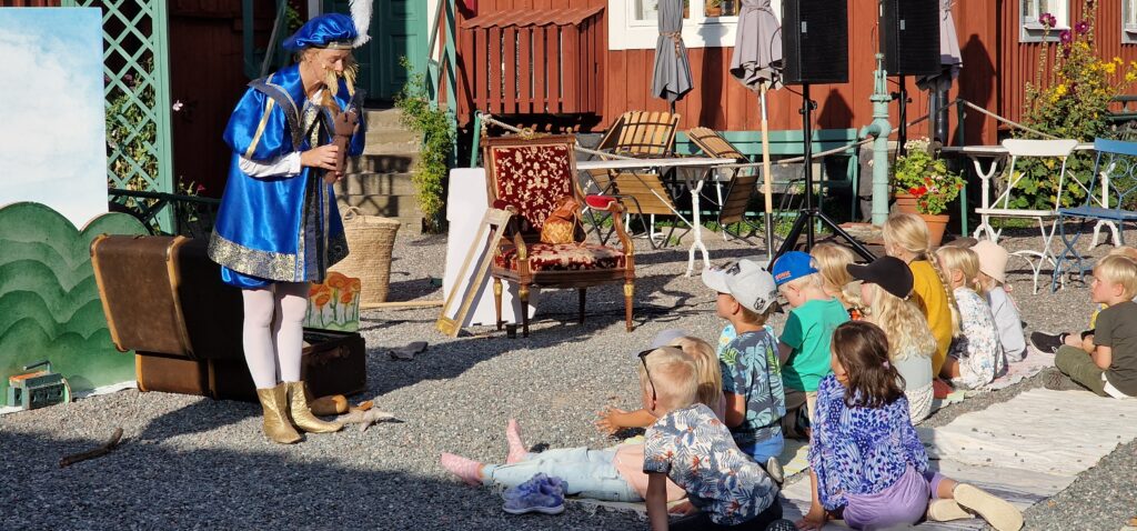 Pjäsen ska snart börja. Barnen på Callanderska gården har bänkat sig på mattorna som ligger utlagda framför kulissen där Lotta redan finns på plats, småpratar och svarar på frågor.