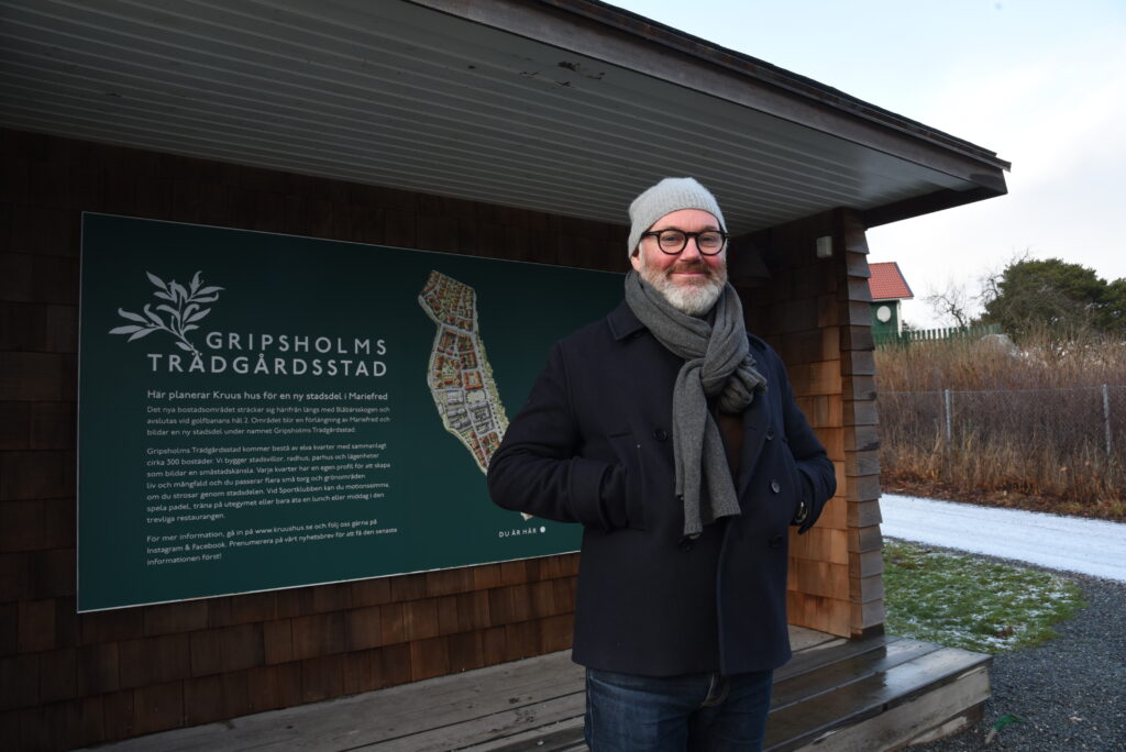 Kruus hus äger marken och planerar att bygga runt 300 bostäder på det 7,5 hektar stora området. Tanken är att ”Gripsholms trädgårdsstad”, som man kallar det, ska bli en del av Mariefred och smälta ihop med den nuvarande stadsmiljön. Området börjar vid hål ett och fortsätter till hål två på nuvarande golfbanan. Exakt hur området ska se ut är inte klart, men enligt de skisser man har gjort nu blir det 11 kvarter med olika karaktär. Det blir både radhus, parhus, stadsvillor och flerfamiljshus.