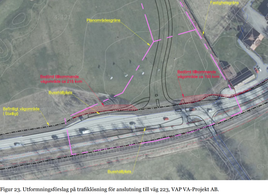 Även placeringen av anslutningen till området från väg 223 vid infarten till Gripsholmsskolan har tagits upp som problematisk.