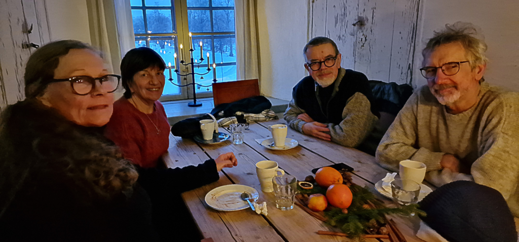 Nu sitter de vid ett av de anrika träborden, dricker kaffe och insuper stämningen i det gamla Kronköket. Alla är nöjda med den dignande kakbuffén.