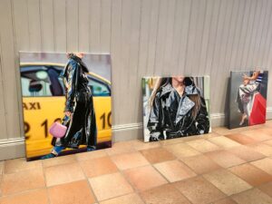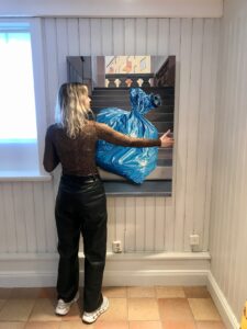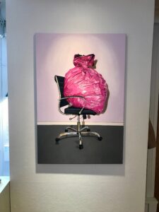 Temat på Lovisa Skölds senaste utställning är plast, lack och polyester. Hon arbetar främst i olja och skapar verklighetstrogna bilder som får betraktaren att tro att det är fotografier, och hennes målningar utgår från foton för att få till alla skuggor och glansiga partier på rätt ställen. Det är ett detaljrikt och noggrant arbete, där hon lyckas få plast att se vackert och exklusivt ut.
