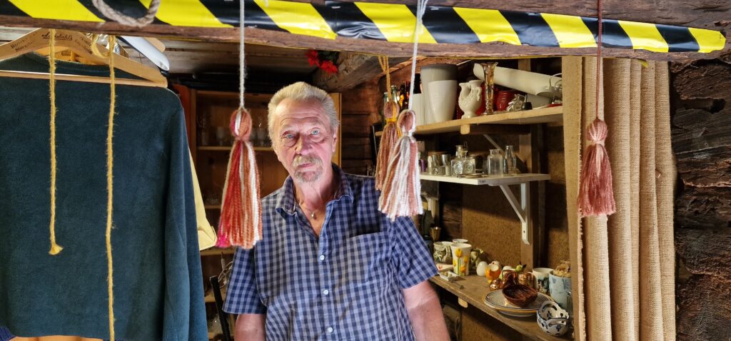 Leif är en av dem på hembygdsföreningen som har valt att engagera sig i loppisverksamheten. Möbler, prydnadssaker, smycken och annat som finns på loppisen har skänkts av människor som vill stödja hembygdsföreningen. Alla intäkter går till verksamheten på Callanderska.