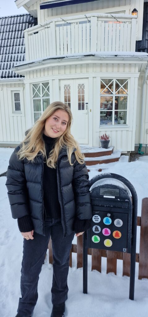 Magneterna är en framtidsprodukt tänker Jennifer eftersom många andra städer är intresserade av det här systemet som finns i Strängnäs med optisk sopsortering där man återvinner i olikfärgade plastpåsar.