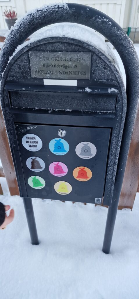 Magneterna är för alla som färgsorterar sina sopor. De fästs på brevlådorna istället för att man sätter fast plastpåsar för att visa vad man behöver för nya färger. Det ser snyggare ut och dessutom skyms inte adressen av plastpåsarna.