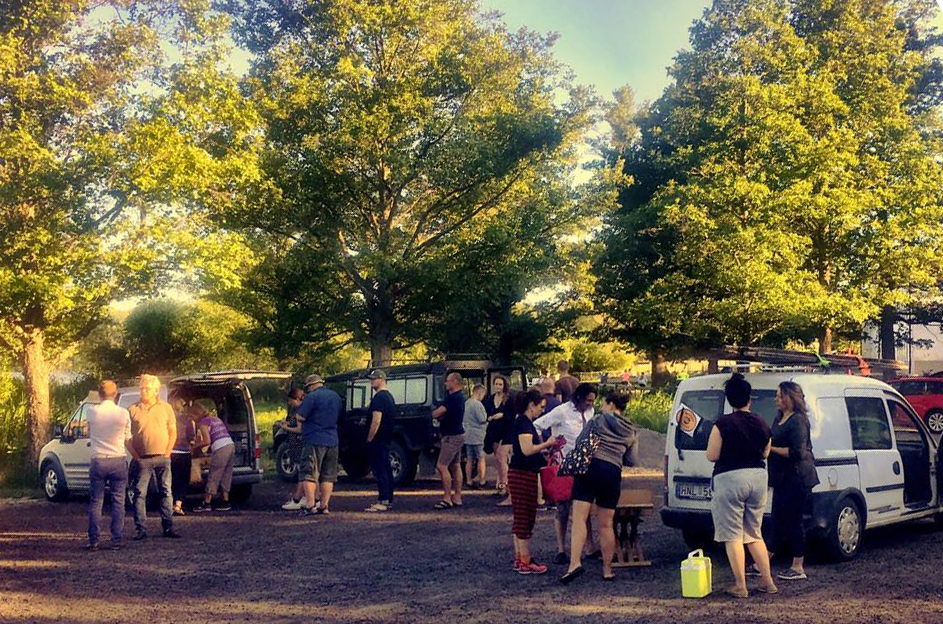 Träffarna på Gripsholms parkering blir, speciellt under de varmare ljusare årstiderna, också ett socialt möte.