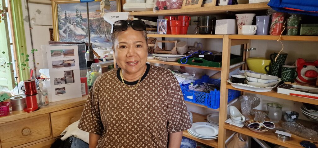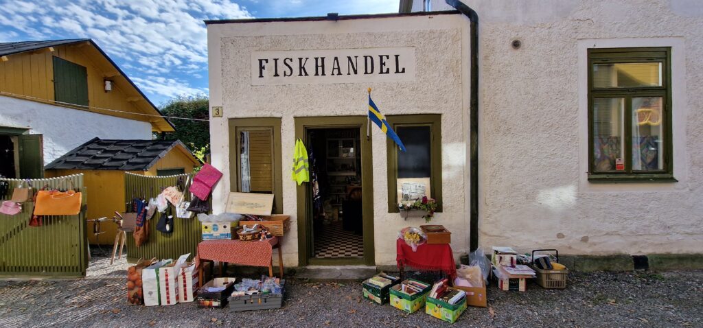 Många beundrar den gamla vackra fasaden, där det en gång låg en fiskbutik intill torget i Mariefred. Idag är den affären sedan länge borta och istället är det loppis här när vädret är fint. Det är Lek Hernfalk, som tillsammans med sin man Mikael säljer allt mellan himmel och jord.