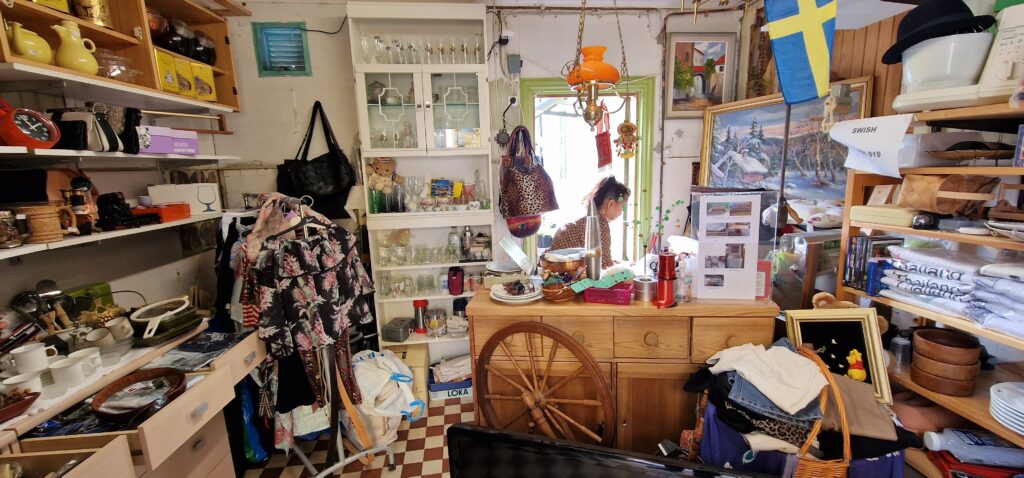 På loppisen finns porslin, prydnadssaker, kläder, leksaker och allehanda kuriosa.