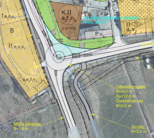 Vad gäller gångtrafikanter finns det i förslaget övergångställen planerade över Kärnbogatan och en övergång som korsar Stallarholmsvägen norr om Kärnbogatan. David vet i dagsläget inte ifall det blir både övergångsställen och trafikljus.