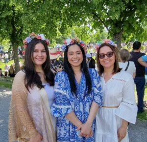 Trion skulle gärna stannat längre för allsången var fortfarande i full gång, men de var nu tvungna att lämna Midsommarängen för att uppleva mer av svenska midsommartraditioner.