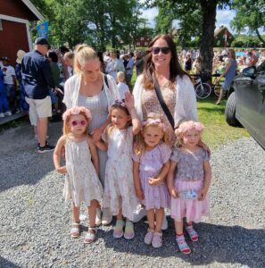 Annette från Mariefred var där med sin svärdotter Linnea och barnbarnen Alicia, Emilia, Nelly och Alba. De var alla nöjda efter att ha dansat och sjungit tillsammans med alla andra midsommarfirare.
