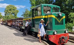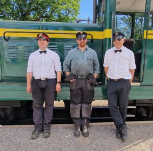 På museijärnvägen rullade tågen. Den här dagen var det dieselloket Gajvoron som drog midsommarfirarna fram och tillbaka till Läggesta station.