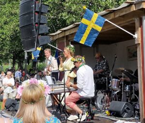 Firandet fortsatte med traditionell ringdans och så småningom också allsång. Bandet bestod av Linus Fagerström, Wim Grooten med flera. De framförde klassiker som, ”Ta mig till havet” och ”Det var en kväll i juni”. Tonerna ekade över Mariefred och på ängen sjöng människor med och dansade till musiken.