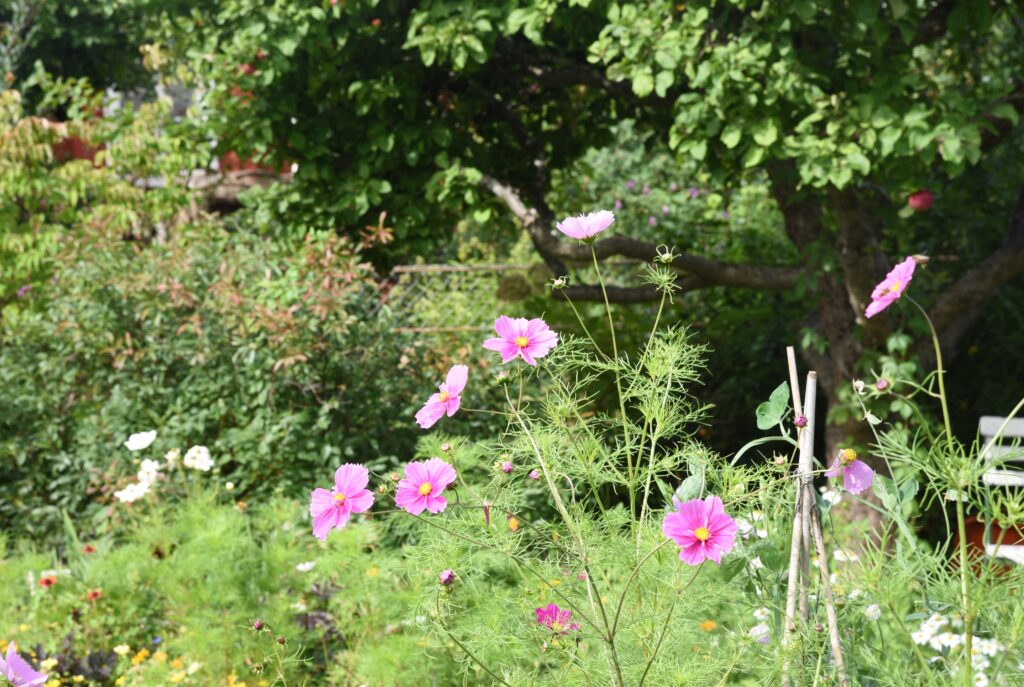 Trädgården är en oas med blommor och fruktträd och här tillbringar Gunilla en stor del av sin tid.