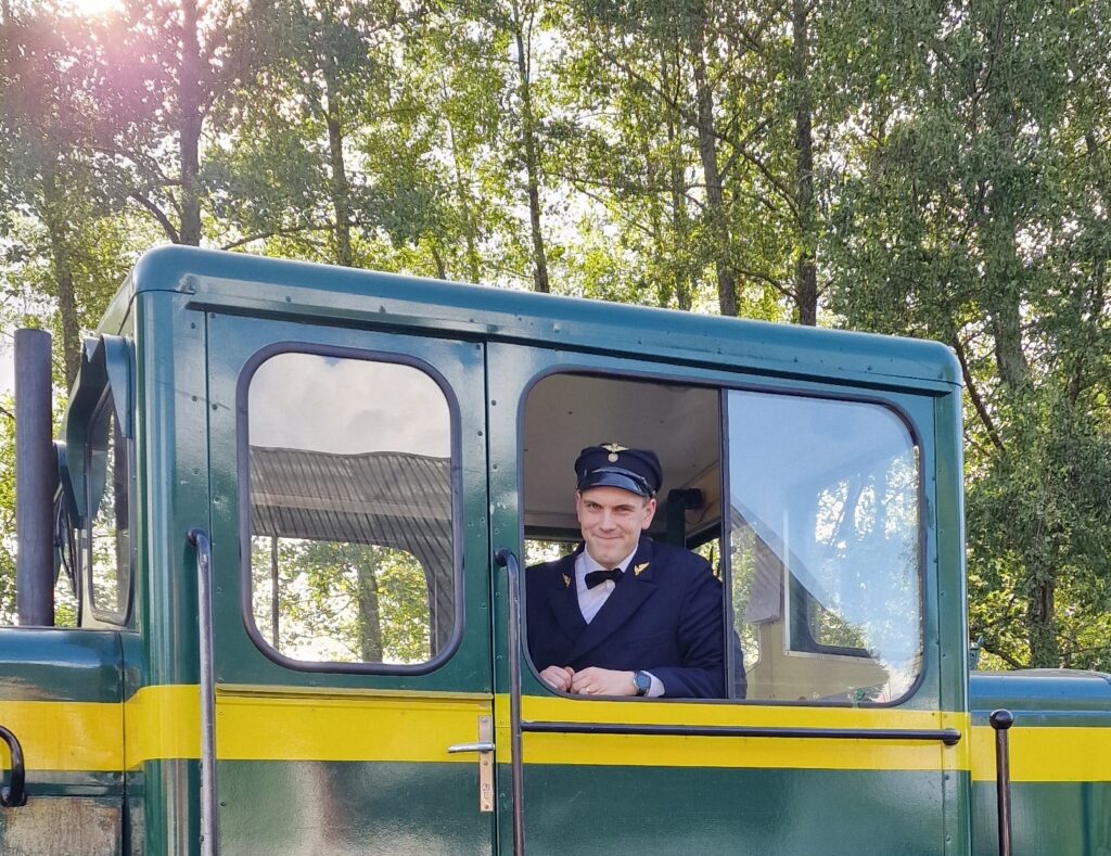 Under dagen har man praktiskt kunna testa mycket av det som ingår i föreningens verksamhet. Själv visade Daniel hur man kör motorloket Gaivoron. Det blev många vändor på bangården under dagen.