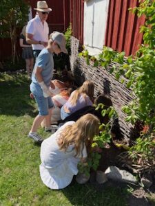 Per Aronsson och Annika Westling från Hembygdsföreningen samt Johanna Battaroff från Gripsholms värdshus deltog tillsammans med barn från Mariefreds och Gripsholms skola, när planteringen skulle genomföras.