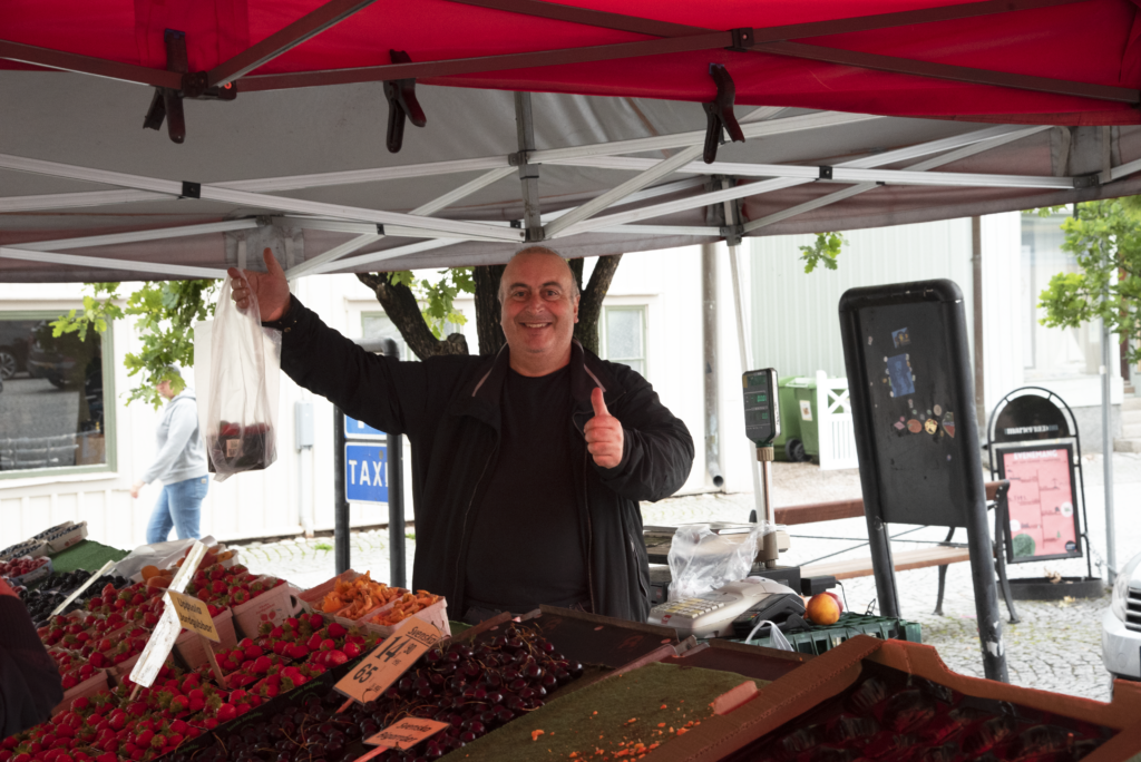 För sista gången den här säsongen plockar Aydin Tunc fram sina bär, frukter och grönsaker. Det är säsongsavslutning för torghandeln. Aydin trivs med att jobba i Mariefred.