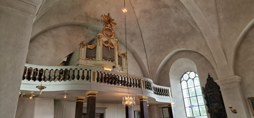 Orgeln Per spelar på var från början ett instrument som byggdes av Olof Schwan 1786. Han var en av sin tids främsta orgelbyggare. Från det att han startade sin egen självständiga verksamhet tillverkade han ungefär 40 orglar. Idag finns endast sex av dem bevarade. Det är bland annat orglarna i Ängsö kyrka, i Finska kyrkan i Sthlm och i Öveds kyrka.