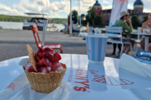 Glassarna är inte svåra att finna i Mariefred dessa solstinna dagar. Här kan man få en mojitoglass som man kan skölja ned med en iskall machalatte. Eller så kan man äta en sommardröm där glassen gömmer sig under en pyramid av härliga söta jordgubbar. Mångfalden för de många glassugna i Mariefred nu på sommaren är stor.